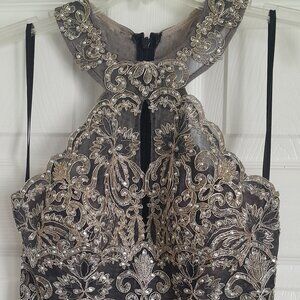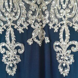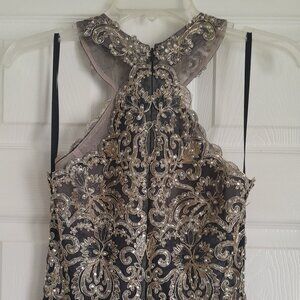 "XSCAPE" Halter Top Navy Blue and Gold Gown sz 6