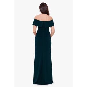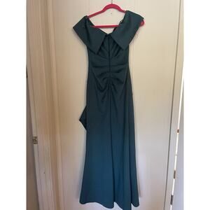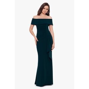 XSCAPE Lindsay Long Scuba Crepe Off Shoulder Dress 6 Pine Green Gown NWOT