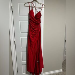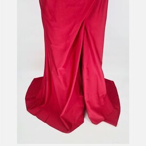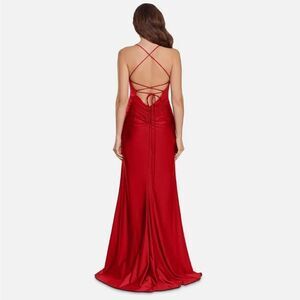 XSCAPE NWT Lace Up Jersey Gown Size 2 Red V Neck Ruched Slit Dress