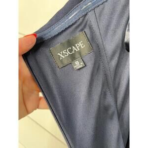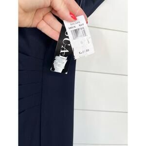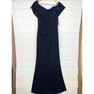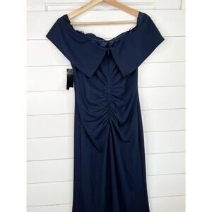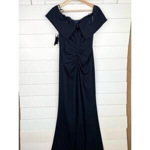 XSCAPE Navy Blue Off Shoulder Ruched Floor Length Evening Gown Dress Size 6