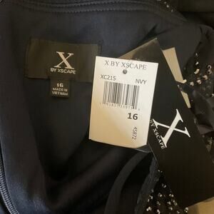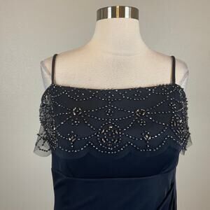 XSCAPE Off the Shoulder Beaded Long Chiffon Evening Gown Blue Size 16 Dress