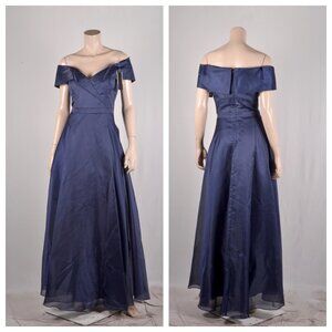 XSCAPE Off the Shoulder Organza Gown in Navy