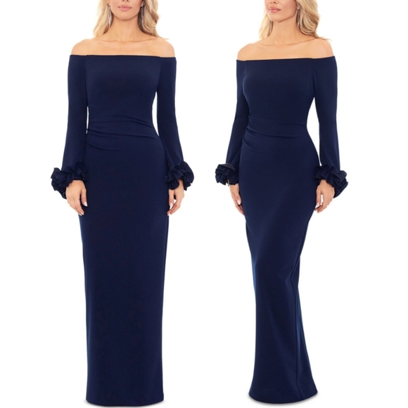 XSCAPE Off-Shoulder Ruffle-Cuff Dress