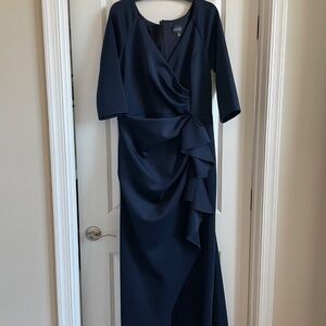 XSCAPE Pleated Ruffled Gown Midnight Blue Size 16