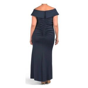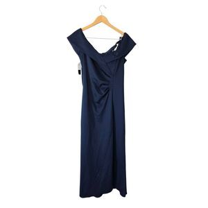 XSCAPE Plus Size 18W Navy Blue Scuba Knit Off-Shoulder Gown NWT $169