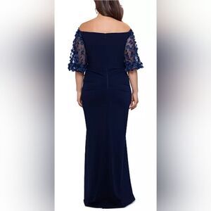 XSCAPE Plus Size Off-The-Shoulder Embellished-Sleeve Gown NWOT sz 18W Blue