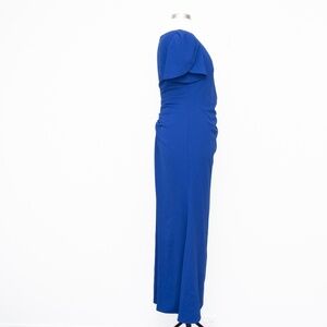 Sleek and refined, this plus size gown from XSCAPE features short tulip sleeves with pleated shoulders, a flattering gathered detail at the side of the waist, and a smooth, full lining. Made with stretchy, supportive ponté-knit fabric, it offers a comfortable fit in a timeless fit & flare silhouette. Fully lined with a back zipper closure, just add heels and a clutch for a polished finish.