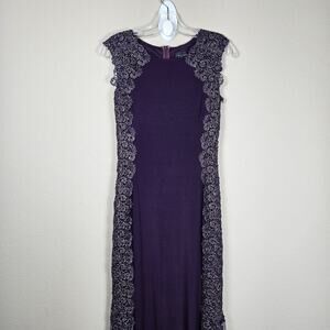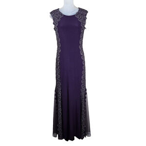 XSCAPE Purple Crochet Lace Column Gown Formal Dress 4 Sheer Stretch Event Party
