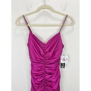 XSCAPE Rhinestone Strap Ruched Seam Sleeveless Gown Pink Formal Stretch US 2 NWT.