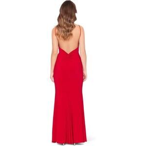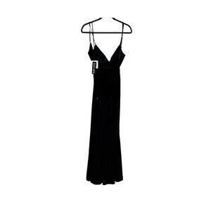 XSCAPE Ruched Slit V Neck Evening Dress Back knot Sleeveless Black Size 12 NWT
