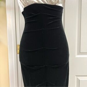 XSCAPE Satin Velvet bow one shoulder formal bodycon dress ivory stretchy size 4