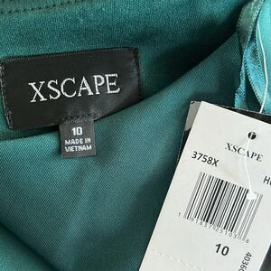 XSCAPE Scuba Crepe Ruffle Gown in Pine Green, NWT, Size 10