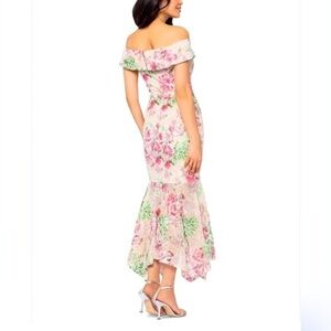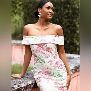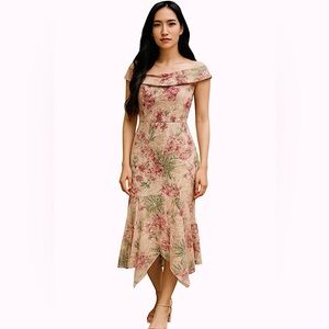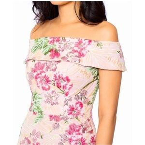 XSCAPE Sequin Embroidered Off the Shoulder Midi Knee Length Floral Dress,10, NWT