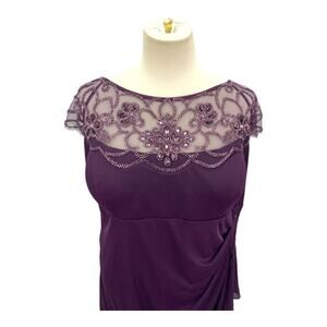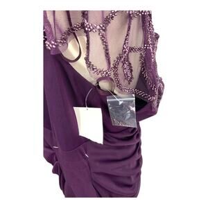 XSCAPE Sheer Matte Jersey Side Ruffle Beaded Dress Purple Size 18W $249 MSRP