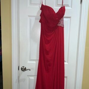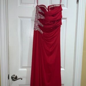 XSCAPE Sz 12 Strapless Rhinestone beaded Cut Out Back Sweetheart Prom Gown Dress