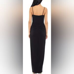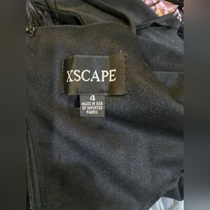 XSCAPE V-Neck Feather-Trimmed High-Slit Gown NWOT size 4 Black