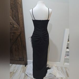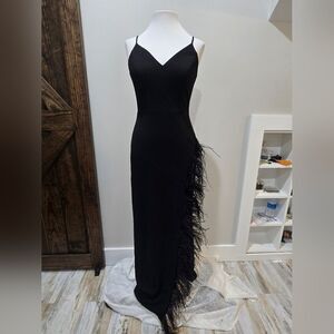 XSCAPE V-Neck Feather-Trimmed High-Slit Gown NWOT size 4 Black