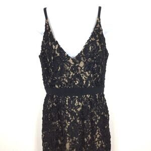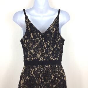 XSCAPE V-Neck Spaghetti Strap Black Lace Midi Sheath Dress size 6