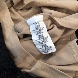 Fully lined in nude with a peek-a-boo hemline of about 4"