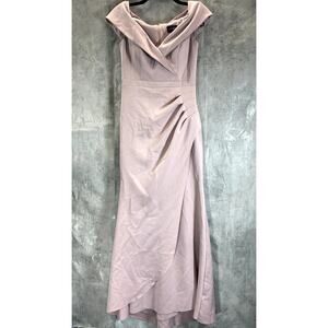 XSCAPE Women's Blush Pink Off-The-Shoulder Sweetheart Neck Ruched Gown SZ 6