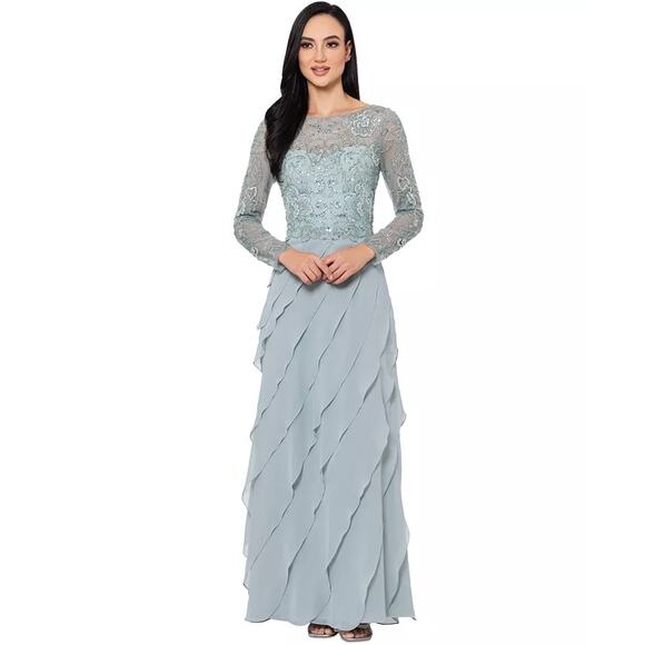 XSCAPE Women's Boat-Neck Long-Sleeve Sequin Dress Sage Green Size 6 NWT