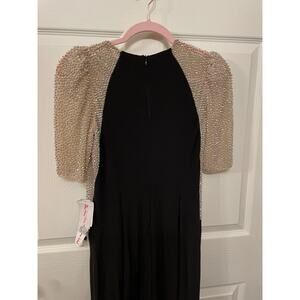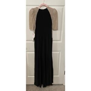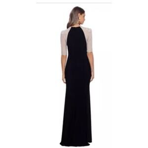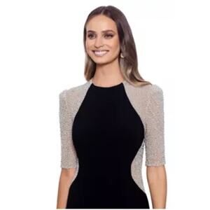 XSCAPE Women's Crew Neck Black and Nude Beaded Illusion Slim Gown,10P