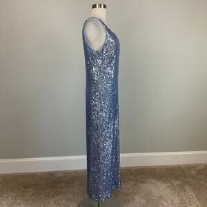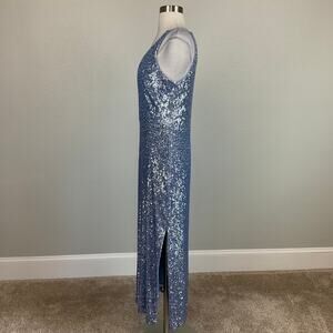 XSCAPE Women's Formal Dress Size 6 Blue Sequined V-Neck Sleeveless Midi Sheath