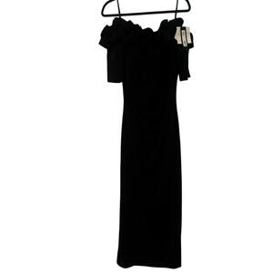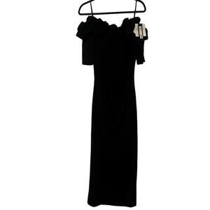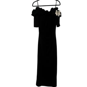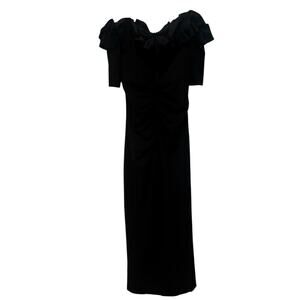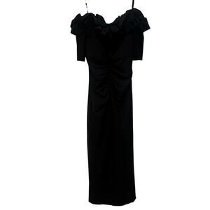 XSCAPE Women's Ruffled Off-the-Shoulder Short Sleeve Crepe Sheath Gown 12 NWT