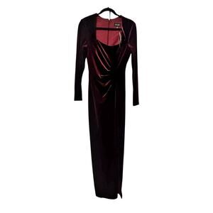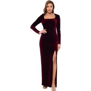 XSCAPE Women's Velvet Square Neck Dress with Long Sleeves Burgundy Size 8 NWT