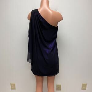 XSCAPE by Joanna Chen Womens Blue Purple Rhinestone One Shoulder Cocktail Mini Dress 6