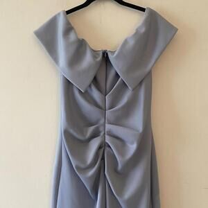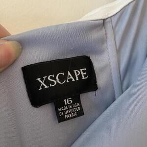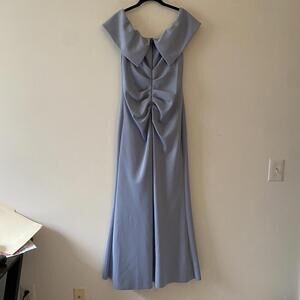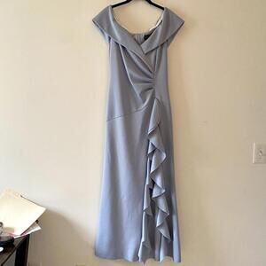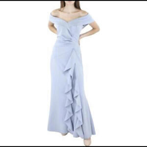 XSCAPE cornflower blue off the shoulder ruffle maxi formal dress