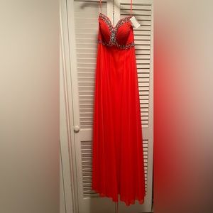 XSCAPE size 6 Strapless Prom Dress Bright red/hot pink/bright coral