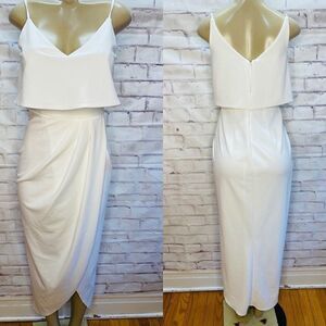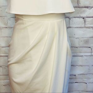 XSCAPE Scuba Crepe Popover Faux Wrap Gown In Ivory size 4 NWOT