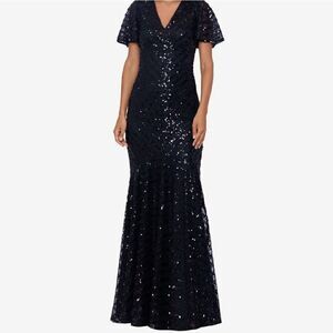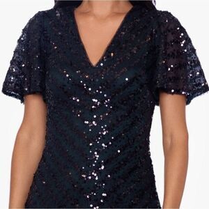 XSCAPEShort Sleeve V-Neck Dress with Sequins