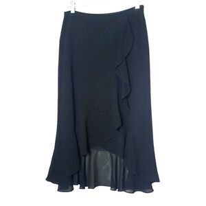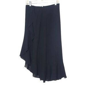 XSCAPE Women's Midi Skirt Sz 10 Black Chiffon Asymmetrical Ruffle Chic Formal