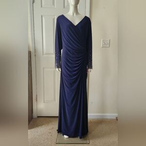 XSCAPE Womens Navy Long Sleeve Full-Length Fit + Flare Formal Dress Plus 16W