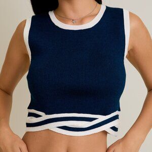 XS--LE LIS Round Neck Contrast Band Knit Top