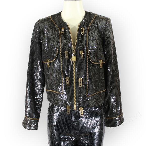 XS/S 80s Vintage Jeanette for St Martin Sequin Zipper Jacket & Pant Kastenberg