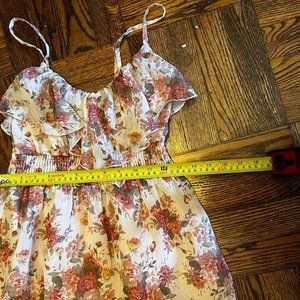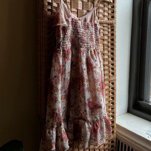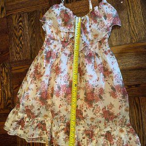[XS/S] Pink Mini Floral Dress, V-neck, ruffles