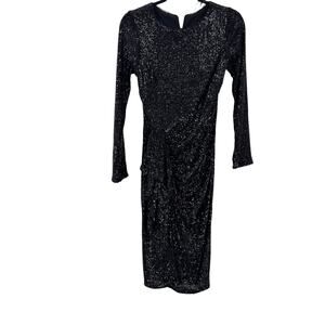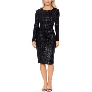 XScape Sequined Midi Formal Cocktail Dress Long Sleeve Black Size 6 NWT