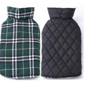 British Style Plaid Dog Reversible cozy and warm jacket. Waterproof and Windproof. Exquisite stitching ,Easy HOOK&LOOP Closure, Easily put on and take off. Comfortable belly part, Warm fleece lining. Material: Polyester fiber. Material: Polyester+TC (terylene/cotton), Water Resistant Outer layer/ Soft and Warm Inner Layer.