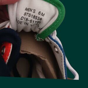These sneakers feature a vibrant colorblock design, offering a bold style statement. Crafted from canvas, they ensure breathability and comfort they come with wht/blue shoelaces comes with original box they are like new from smoke and pet free home.