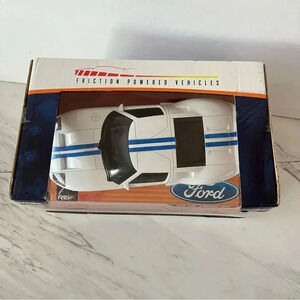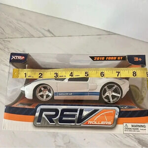 New, XTR 2010 Ford GT Rev Roller Friction Toy Car Vehicle White/Blue Stripes, kids 3 years and up.