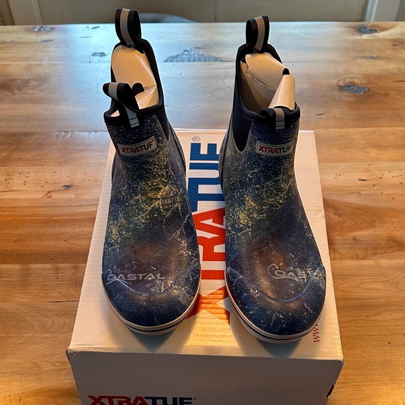 Never worn, includes Xtratuff box, but not exact box for these boots.