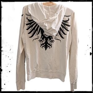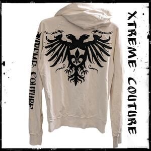 XTREME COUTURE Zip Up Hoodie Sweatshirt Velvet Print Eagle Spellout Sleeve y2k