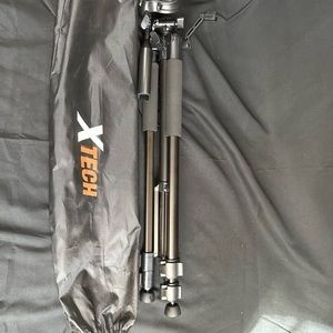 X tech tripod with carrying case - some scratches from wear and tear. Reliable and good condition.