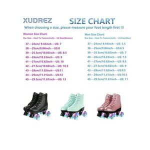 XUDREZ Roller Skates Classic High-Top Double-Row Black Skates LIGHT UP WHEELSNew