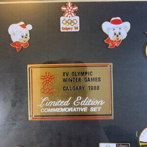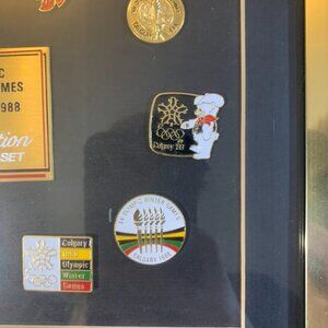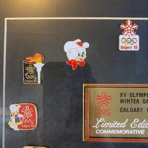 XV Olympic Winter Games Calgary 1988 Limited Edition Pinback Set Framed
