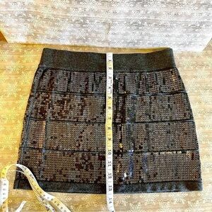 XXI Charcoal Gray Sequined Miniskirt Slim Fit Stretch Jersey Party Glitzy