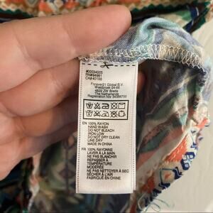 XXI by Forever 21 Aztec Crop Top w/ Zipper Back. Women’s size small. Multicolor and multi pattern tribal designs. Shirt is in good used condition with no flaws or stains other than some minor wash wear. Please see close-up pictures for condition details. Pit to pit measures approx 15.5 in. Length from top of front shoulder to bottom hem measures approx 15.5 in.